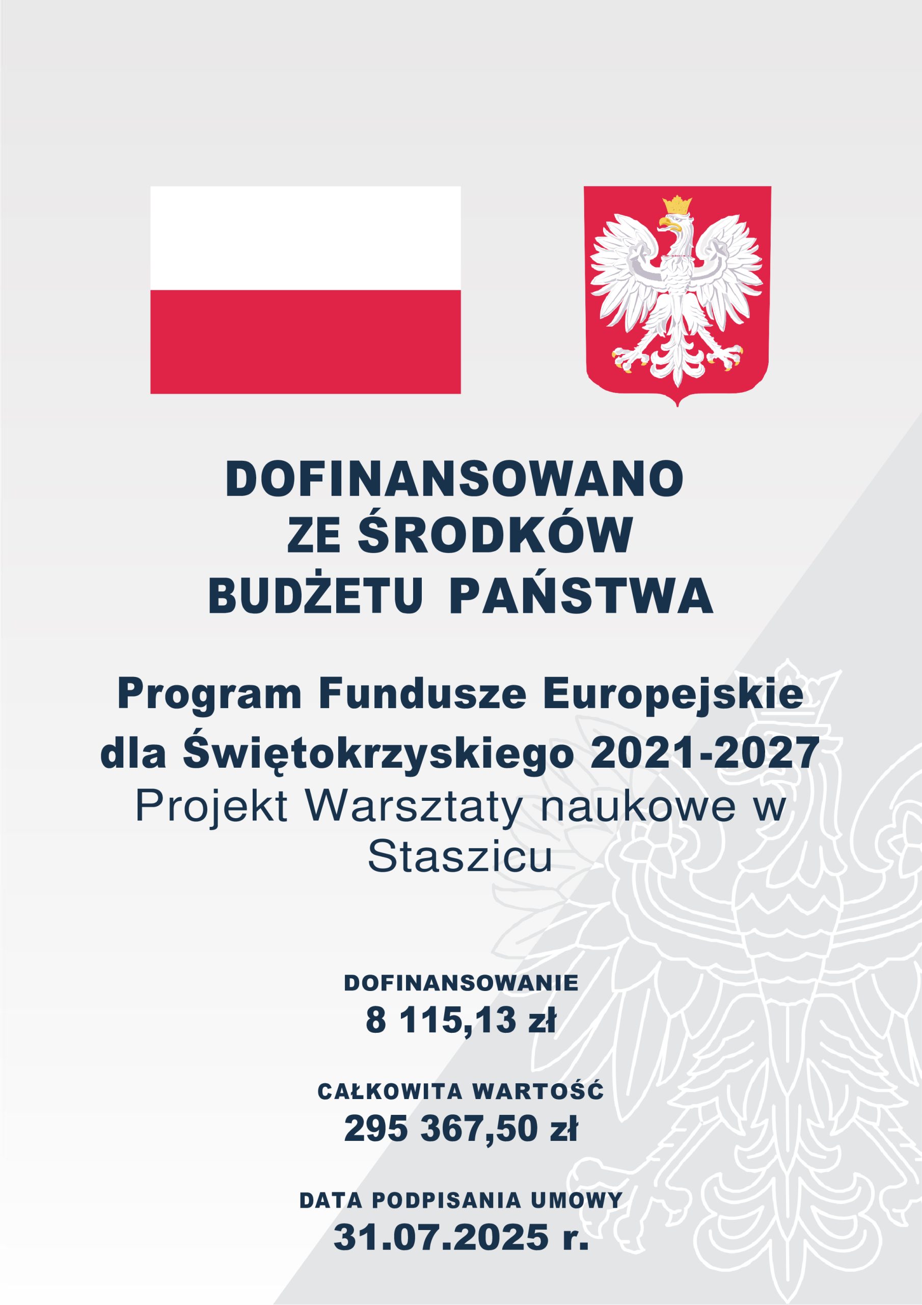 w ramach programu Fundusze Europejskie dla Świętokrzyskiego 2021–2027 oraz z budżetu państwa.